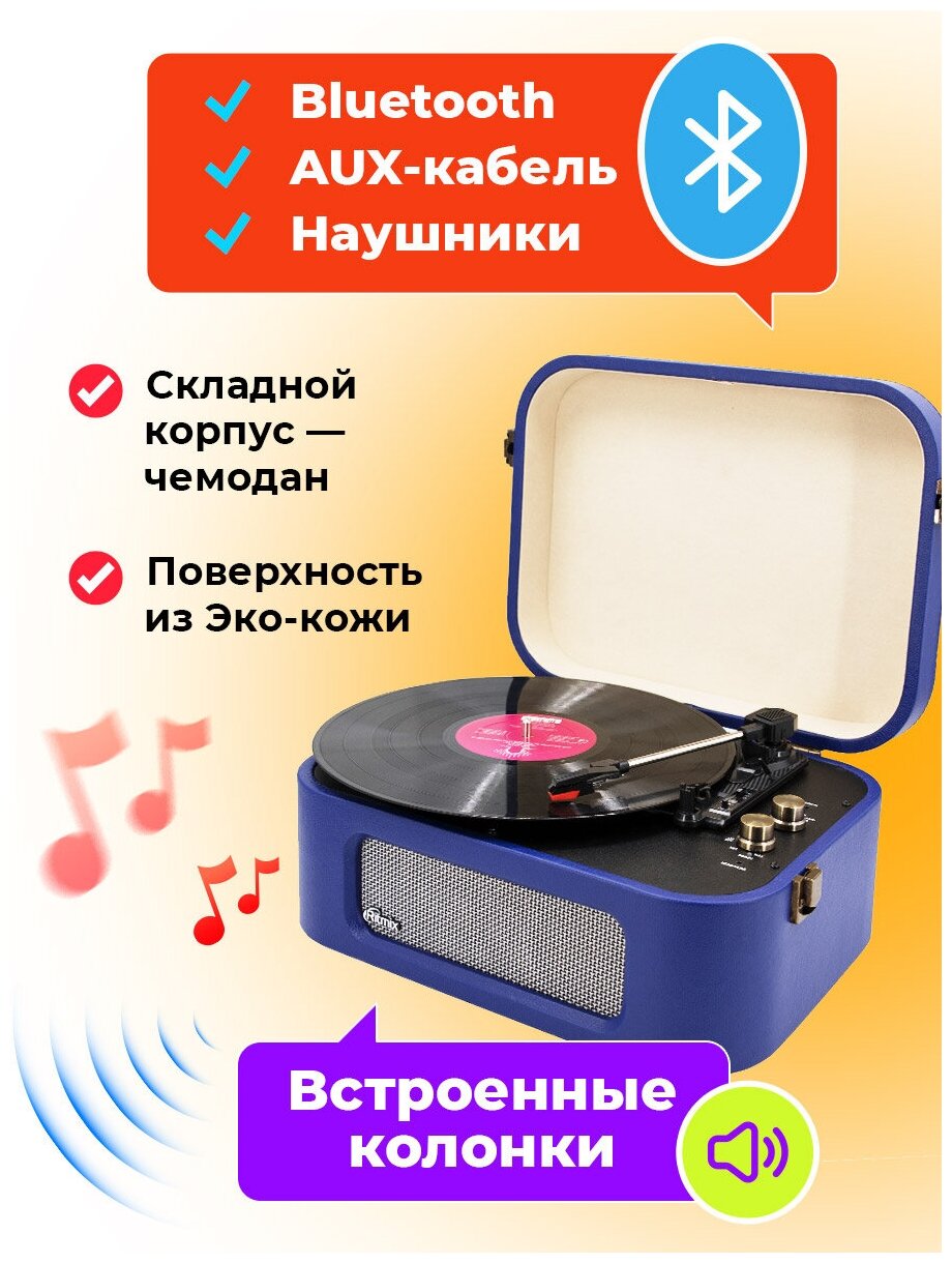 Виниловый проигрыватель Ritmix LP-190B Dark Blue Bluetooth, синий