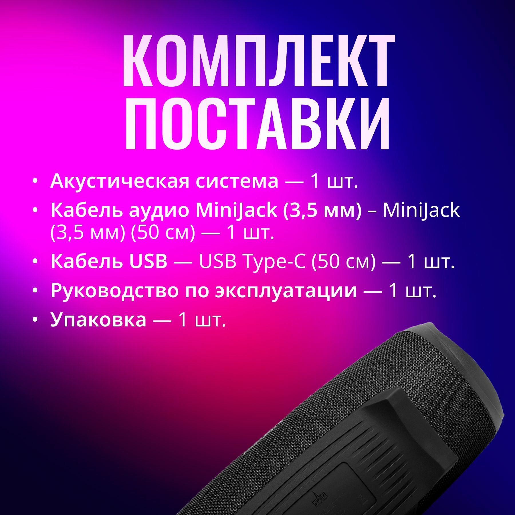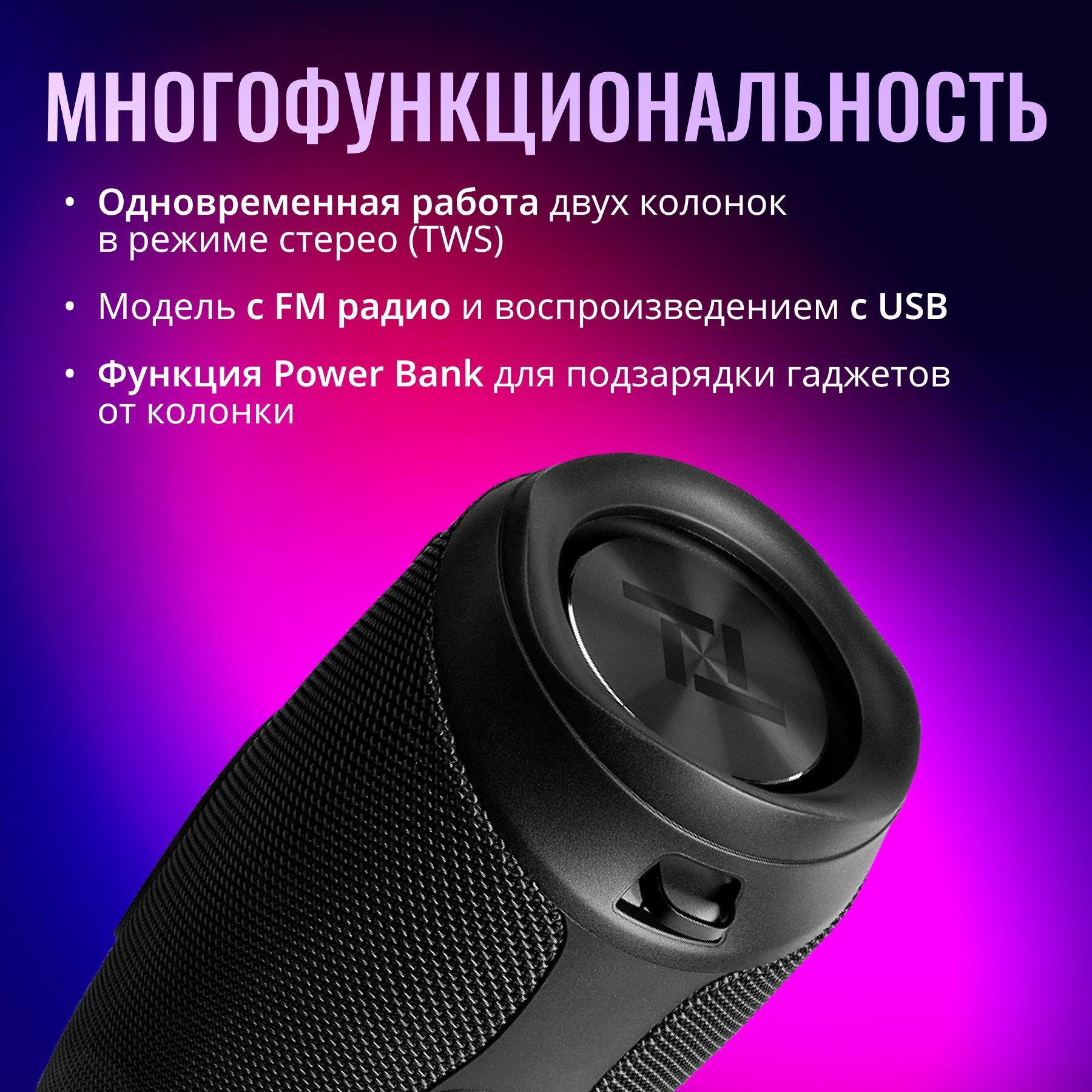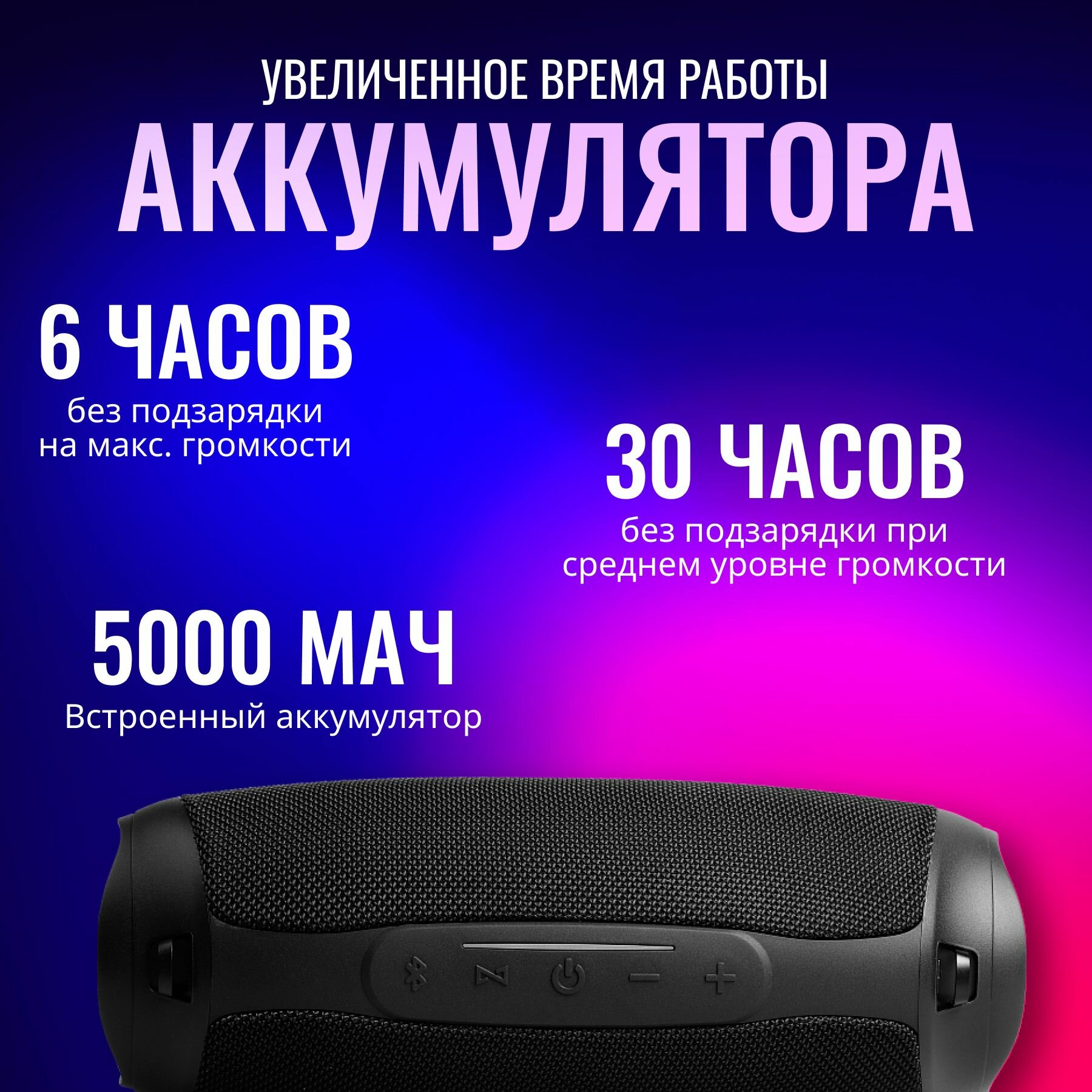| Плюсы: | Впечатлило качество звучания. Хорошая сборка. Колонку приятно держать в руках. К телефону подключается моментально. Заряжается быстро, заряд держит долго. |