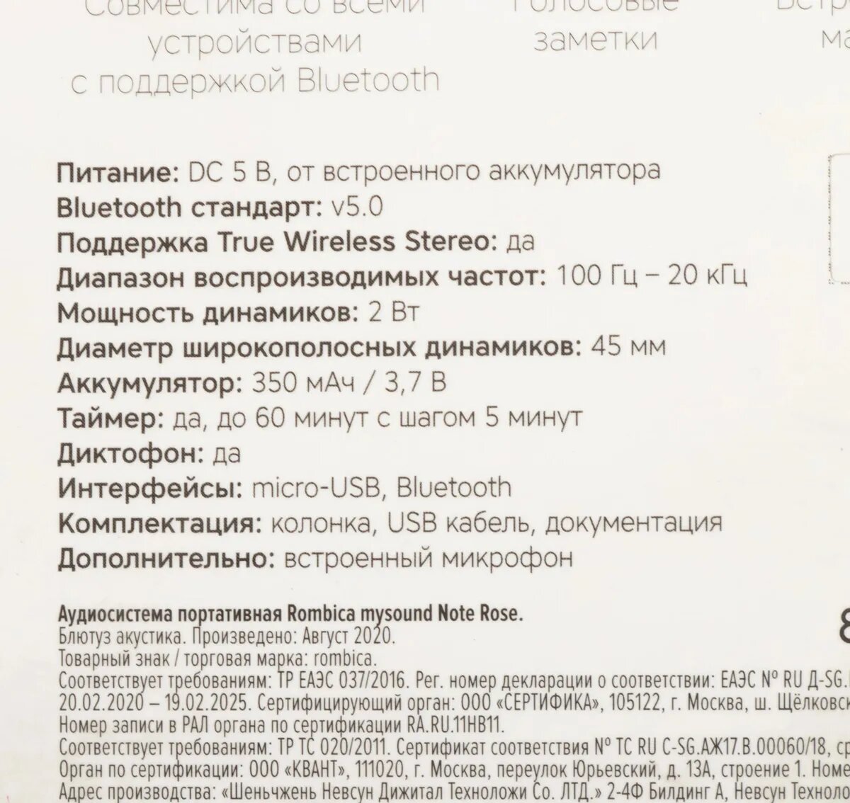 Портативная акустика Rombica mysound Note Rose BT-S081 .