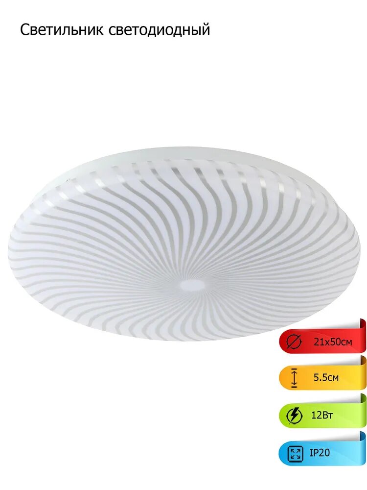 Светильник потолочный светодиодный ЭРА SPB-6-12-6,5kFeya / Люстра потолочная светодиодная на кухню, накладная, круглая, в детскую, в спальню, в гостиную, в зал, модерн, белая, 12Вт, 6500К