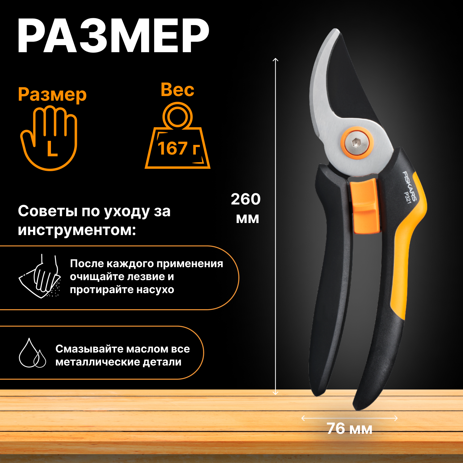 Секатор плоскостной Fiskars Plus P531, 271 мм