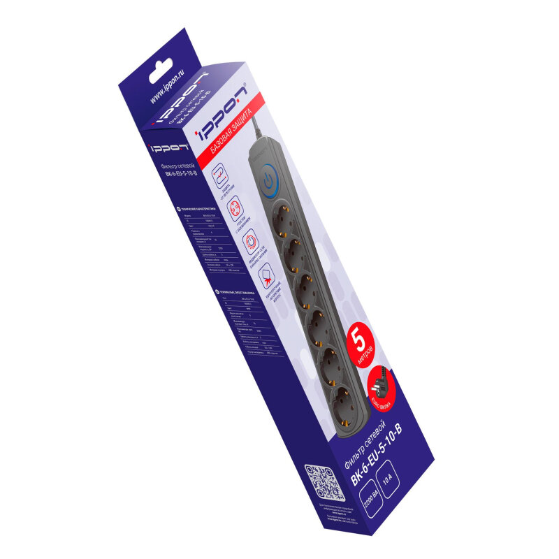 Купить Сетевой фильтр Ippon BK-6-EU-5-10-B 6 розеток 5м черный