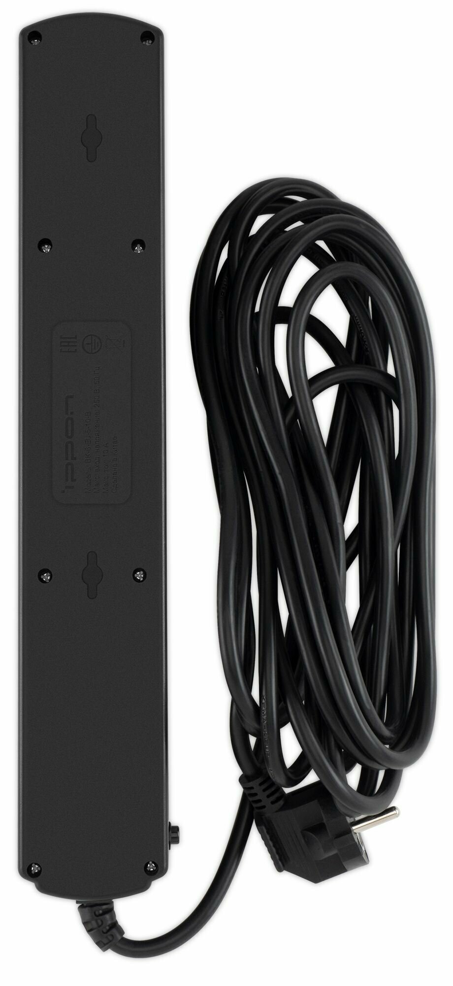 Сетевой фильтр IPPON BK-232, 6 розеток, с/з, 10А / 2200 Вт черный 3 м 320 мм 40 мм 50 мм