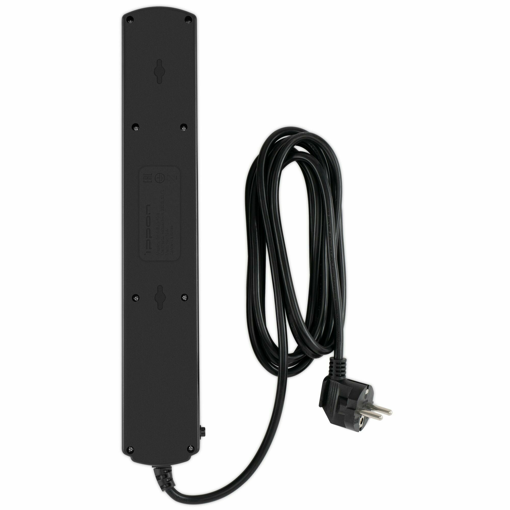 Сетевой фильтр IPPON BK-232, 6 розеток, с/з, 10А / 2200 Вт черный 3 м 320 мм 40 мм 50 мм