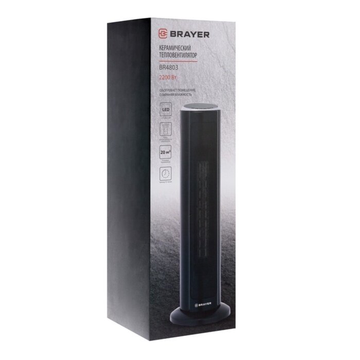 Тепловентилятор BRAYER BR4803, 2200 Вт, LED-дисплей, тайм 12 ч, 20 кв.м, пульт ДУ