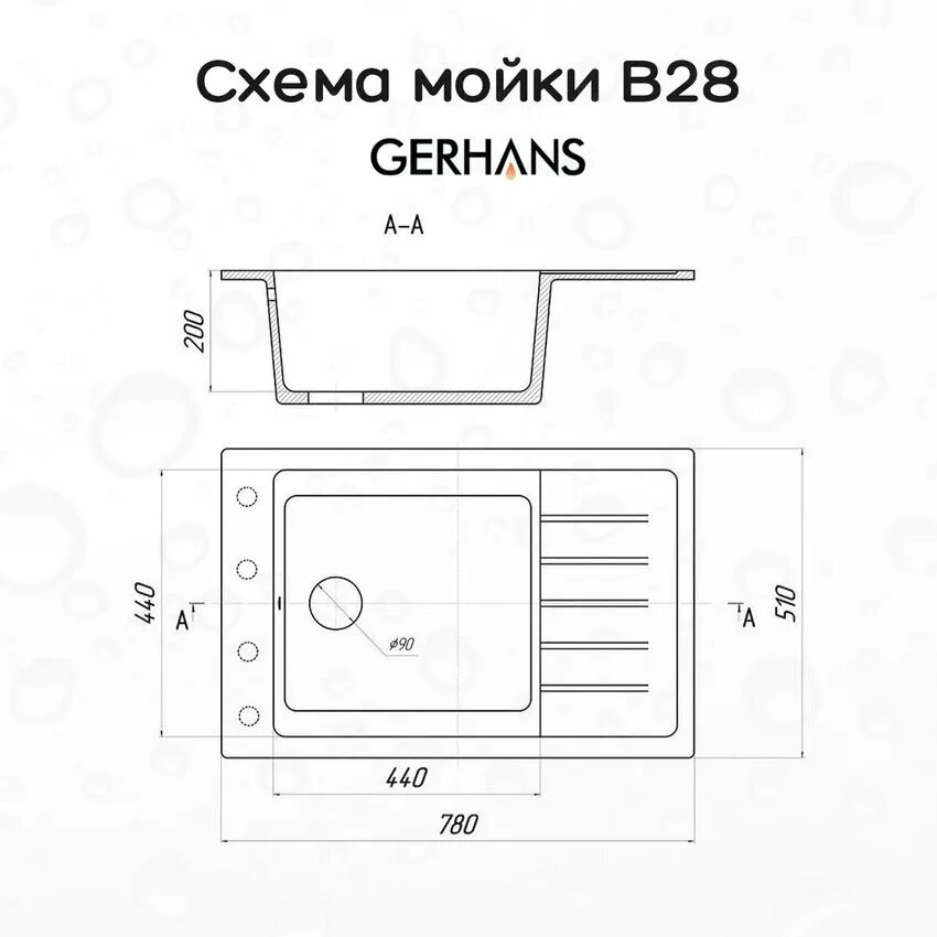 СохранитьМойка для кухни Gerhans B28-25 оникс 780х510мм (Беларусь) интересное: