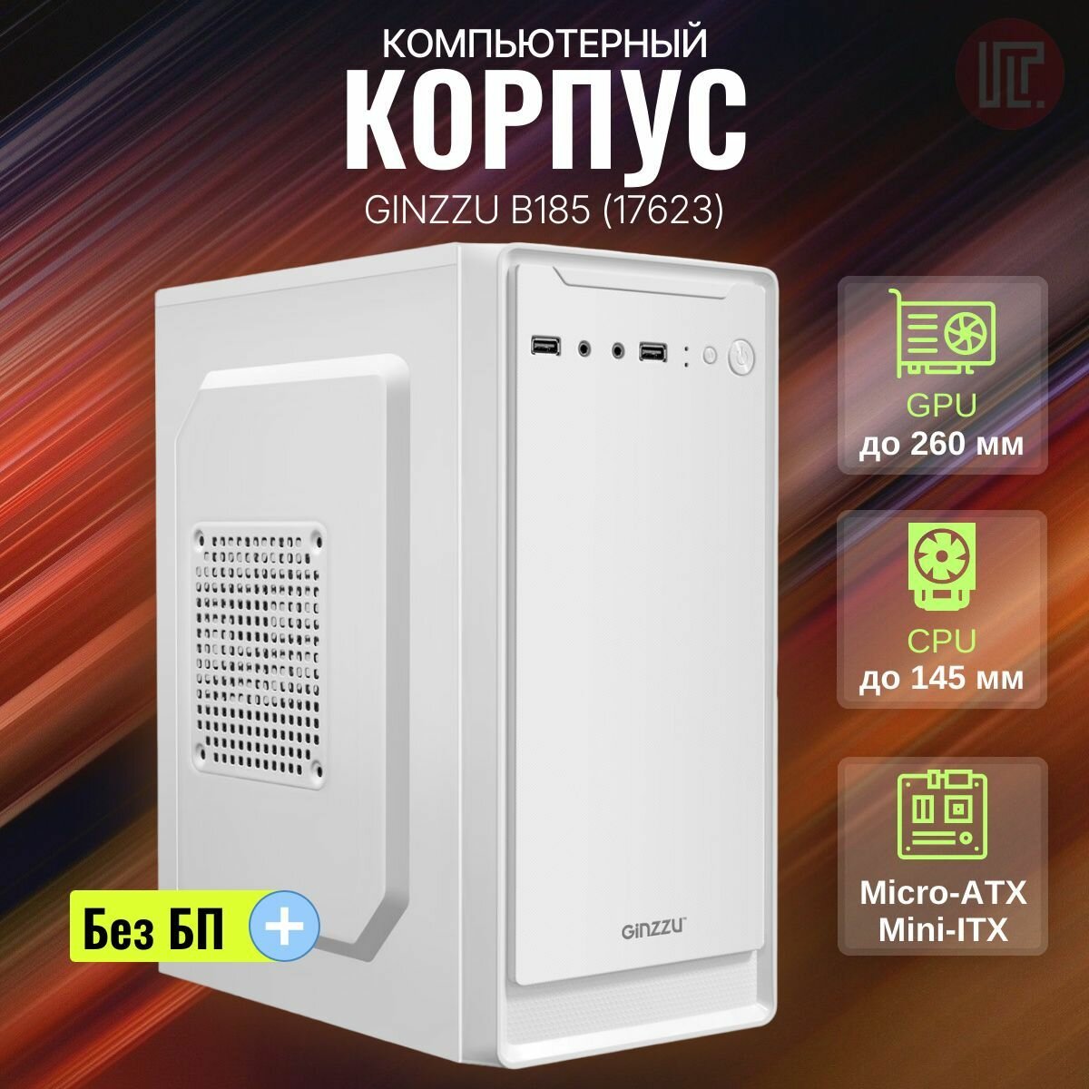 Корпус Ginzzu B185 mATX, Mini-Tower, без БП белый (B185)