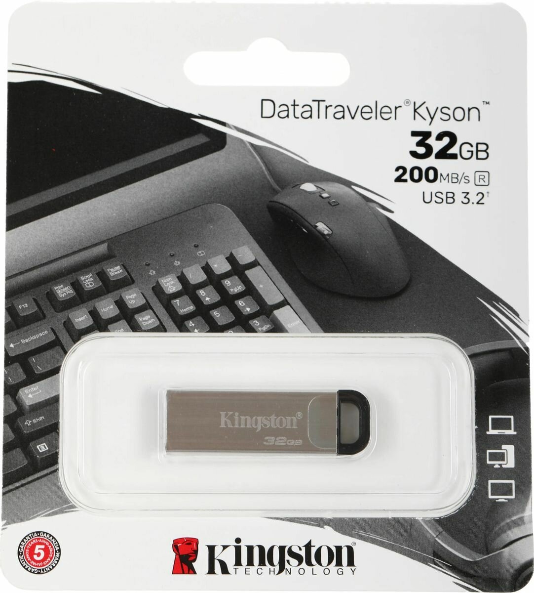 Флешка Kingston DataTraveler Kyson 32 ГБ, 1 шт., серебристый