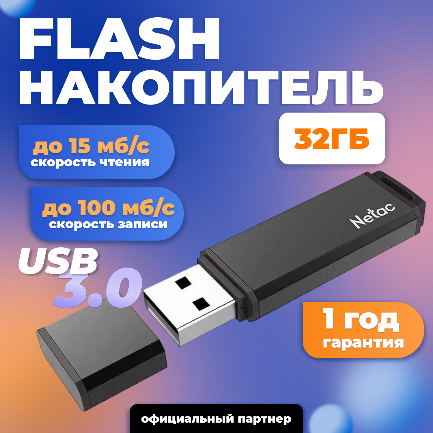 СохранитьФлешка Netac U351, 32 ГБ, USB 3.0, 1 шт., черный (NT03U351N-032G-30BK) интересное: