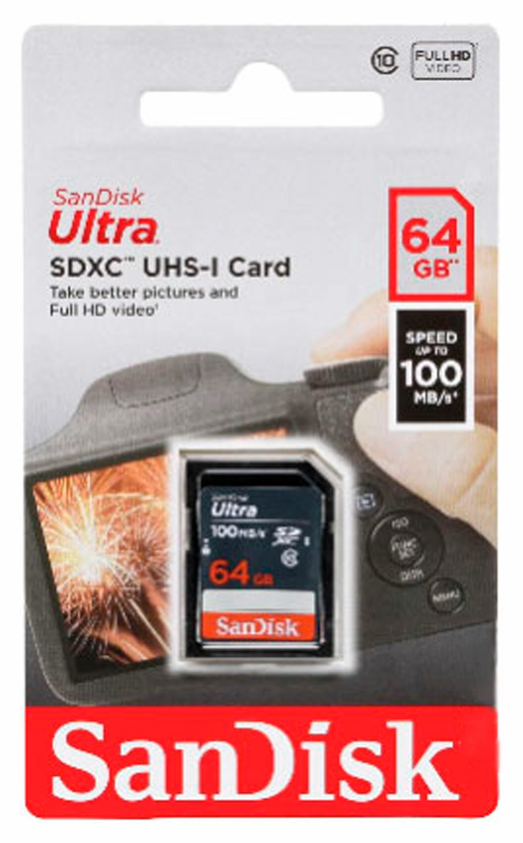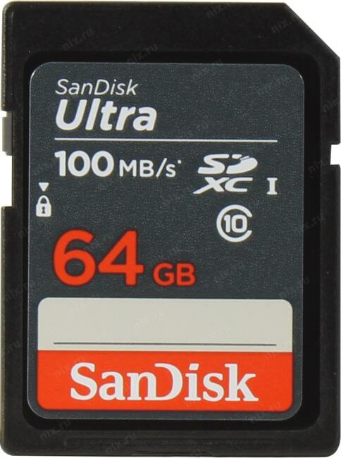 Карта памяти SanDisk SD 64 ГБ Class 10, UHS-I, R 100 МБ/с