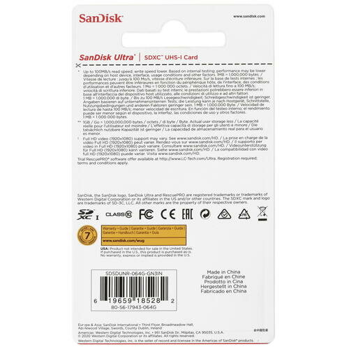 Карта памяти SanDisk Ultra SDXC 64 ГБ (SDSDUNR-064G-GN3IN)