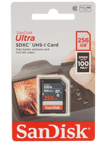 Карта памяти SanDisk SD 256 ГБ Class 10, UHS-I, R 100 МБ/с