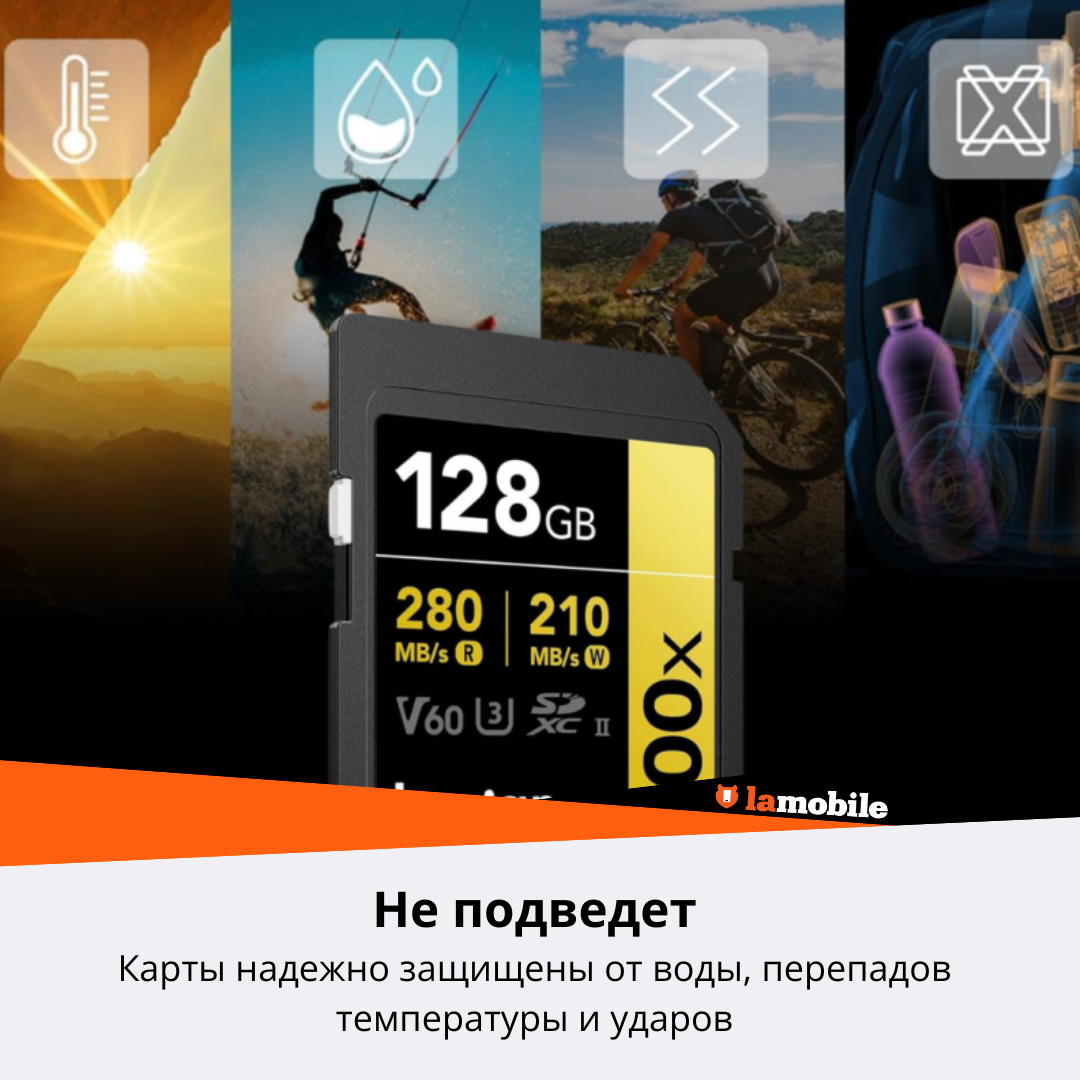 СохранитьКарта памяти Lexar Professional 1800x Gold SDXC 256GB UHS-II U3 V60, R/W 280/205 МБ/с интересное: