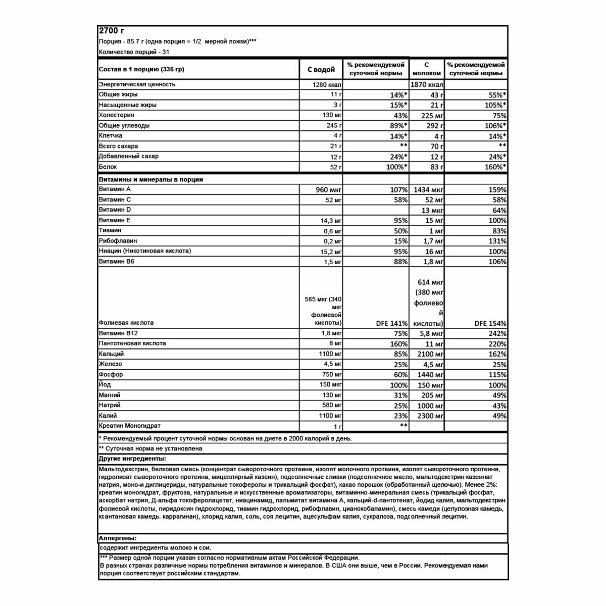 Super Mass Gainer, 2700 г, Gourmet Vanilla / Изысканная Ваниль