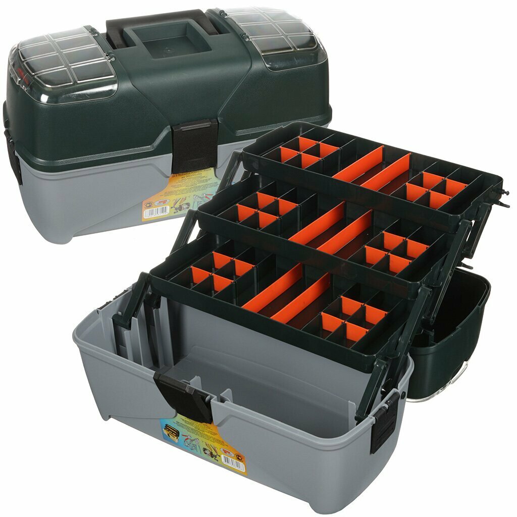 Ящик для инструментов, 22 '', 55х28х29.5 см, пластик, Profbox, Рыболовный, пластиковый замок, 3 выдвижных лотка, 2 органайзера, Е-55