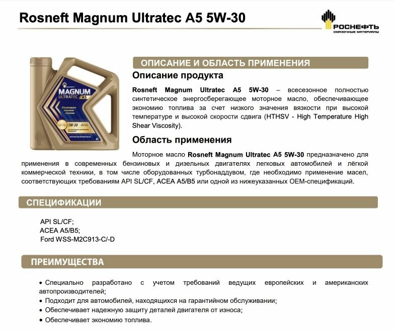 | Класс вязкости SAE | 5W-30 |