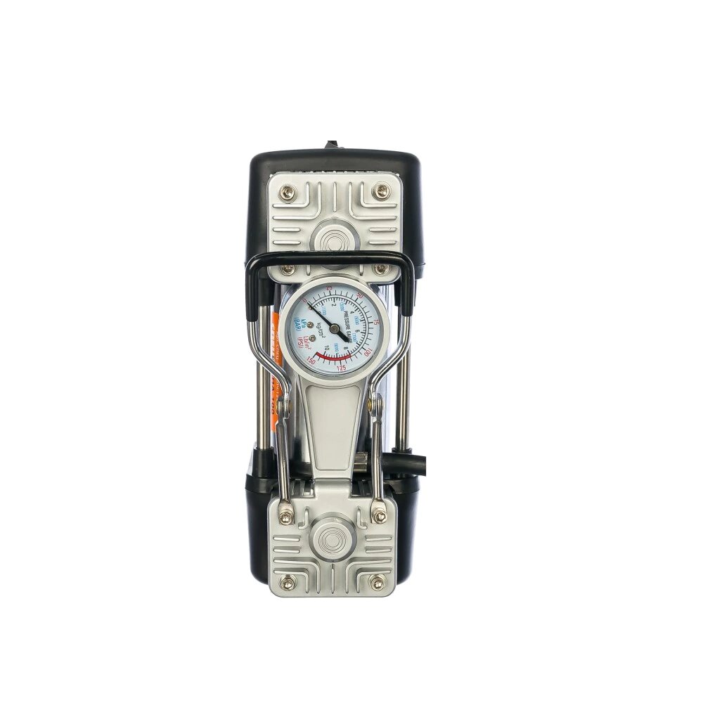 | Минусы: | Слабый для двух поршней. После 1,5 атм. проседает. Слепой манометр. Одноразовый! |