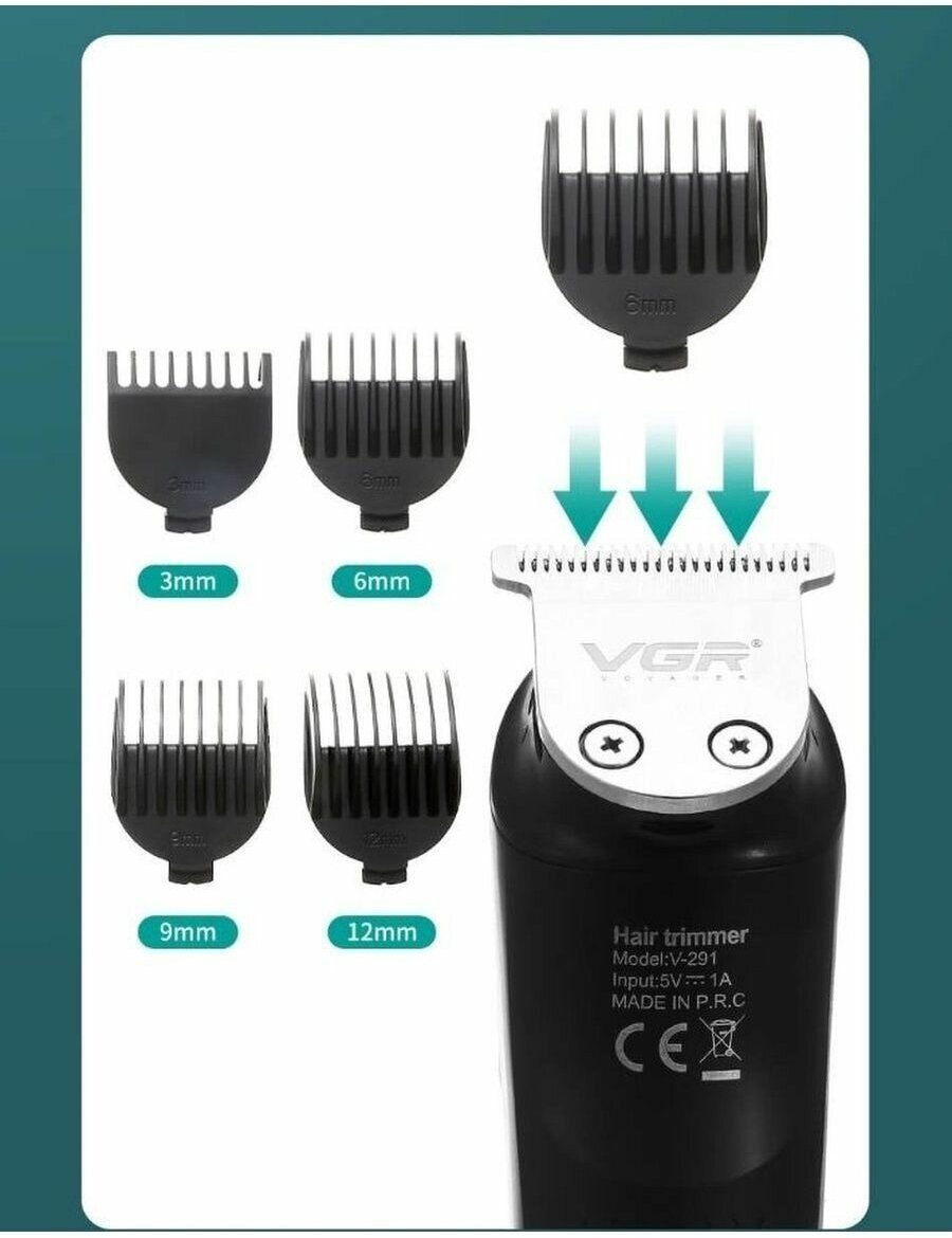 Машинка для стрижки волос и бороды Триммер беспроводной VGR V-055, черный