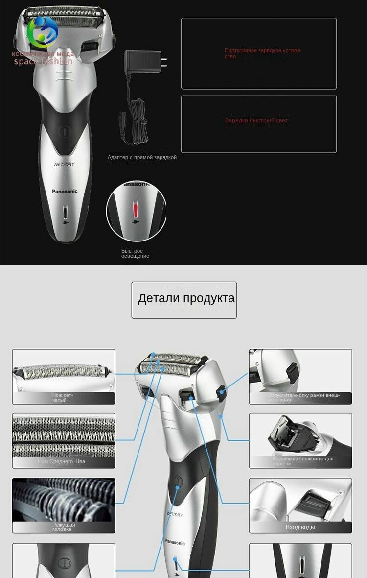 Электробритва Panasonic ES-SL33 перезаряжаемая для возвратно-поступательной мойки с 3 режущими головками интересное: