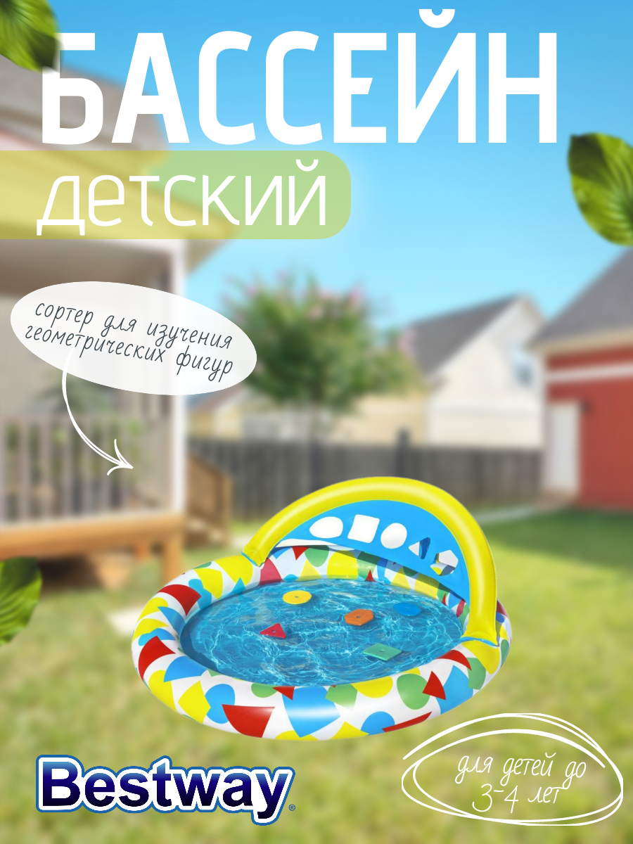 Горки, песочницы и бассейны Bestway Бассейн надувной детский Splash & Learn, 120 x 117 x 46 см, с навесом 52378 Bestway