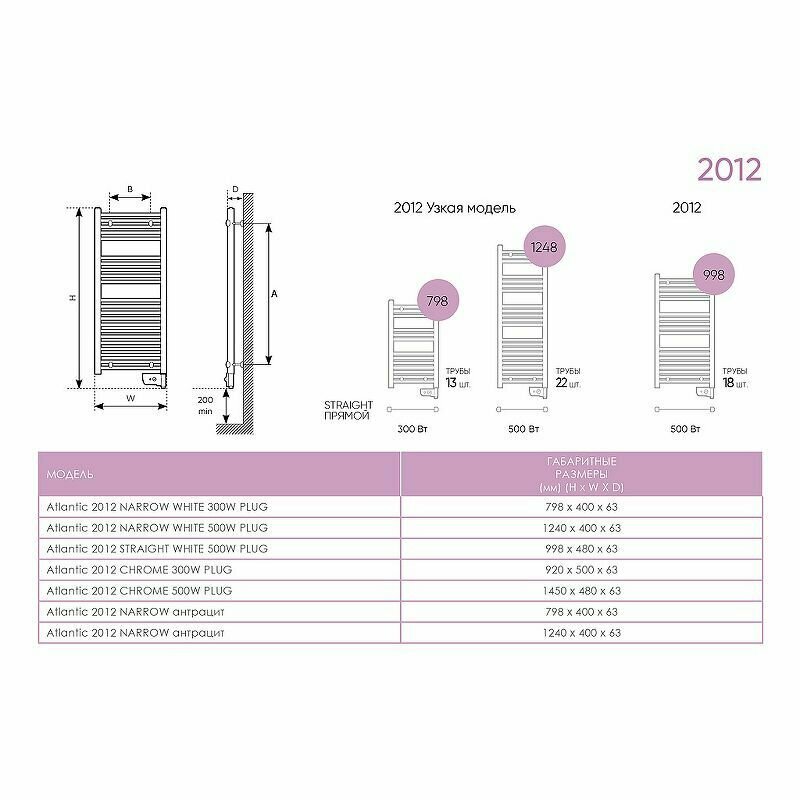 Atlantic Полотенцесушитель электрический Atlantic 2012 NA 300W антрацит