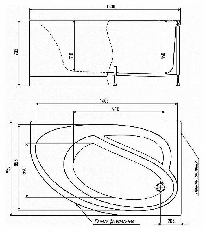 Ванна Alex Baitler NERO правая 150х95 интересное: