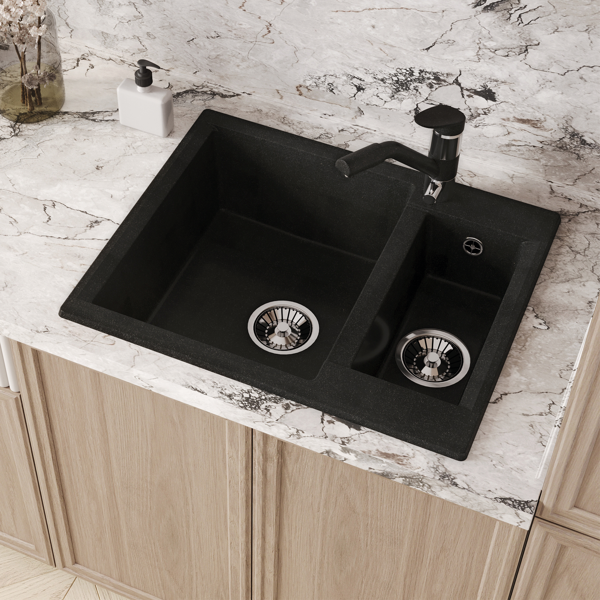 Мойка для кухни POLYGAN Brig-620 каменная с дополнительной чашей (№16 Черный)