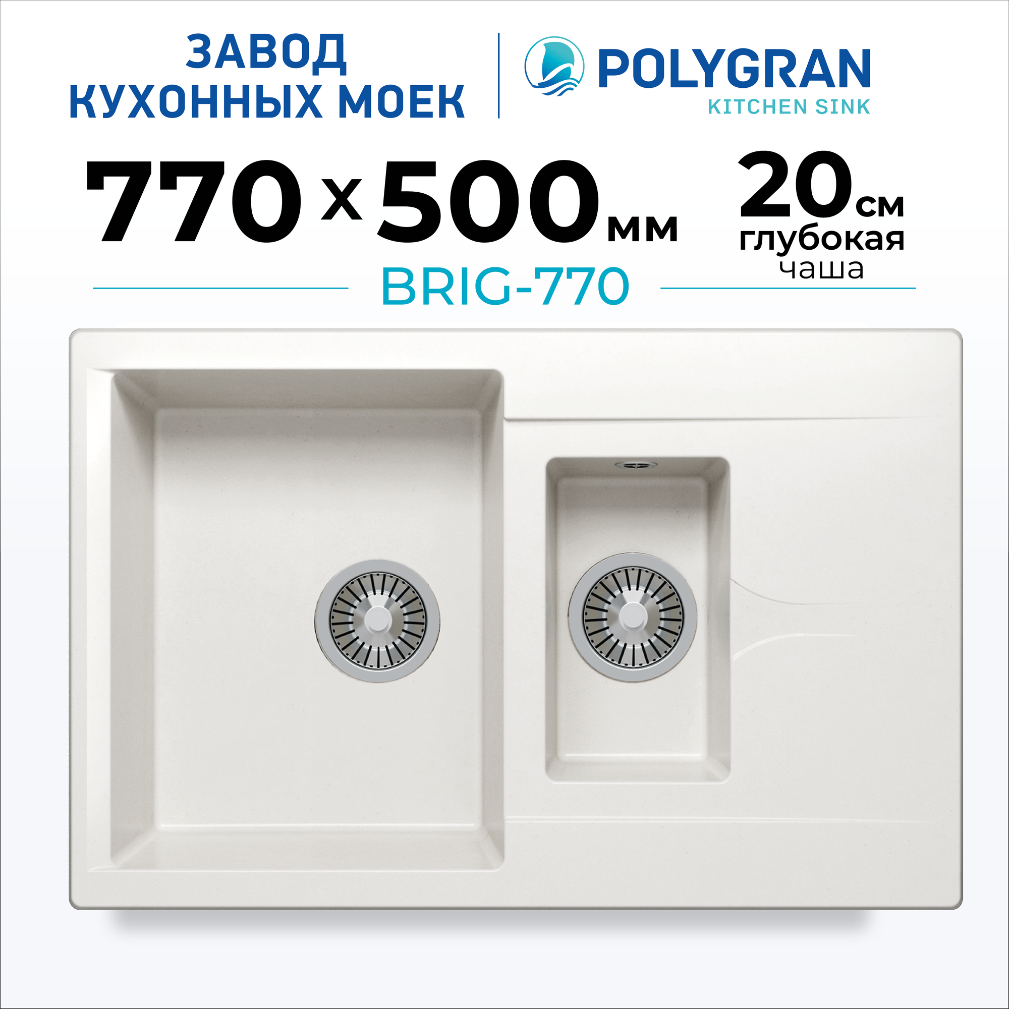 Кухонная мойка Polygran BRIG-770 (№36 (Белый Хлопок))