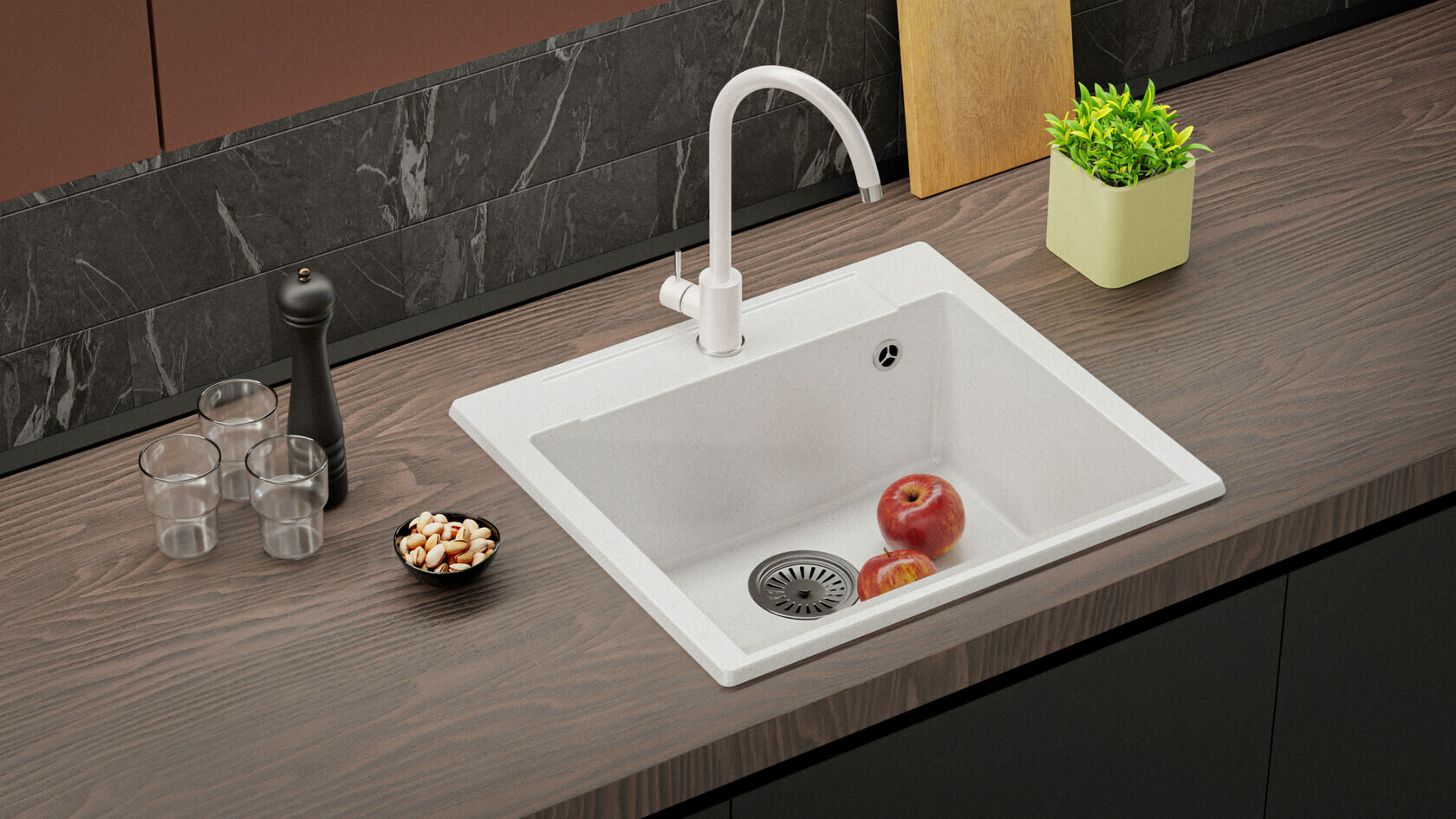 Кухонная мойка POLYGRAN Argo-560, искусственный гранит, 51см х 56см, белый
