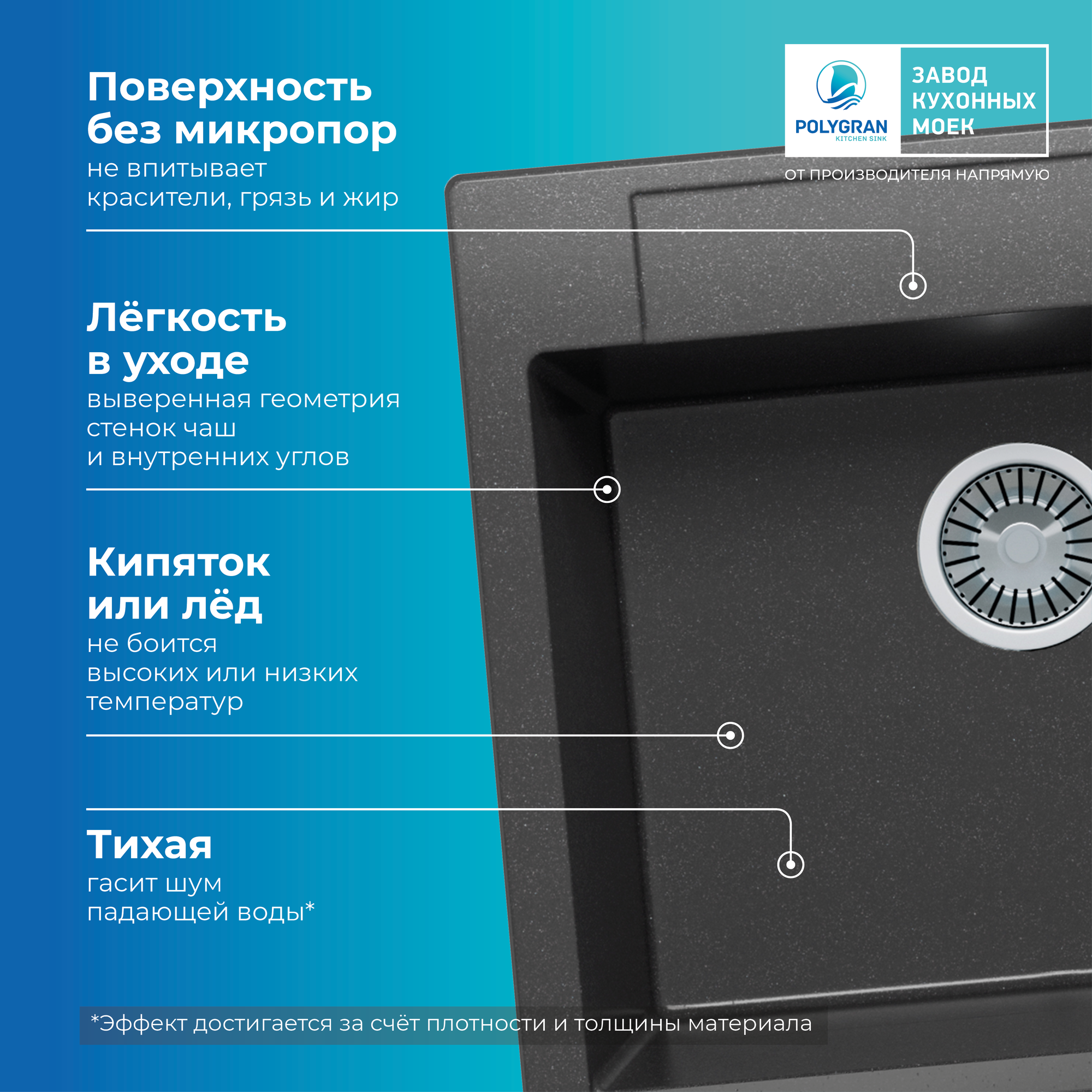 Polygran ARGO-560, мойка, мрамор, черный 16