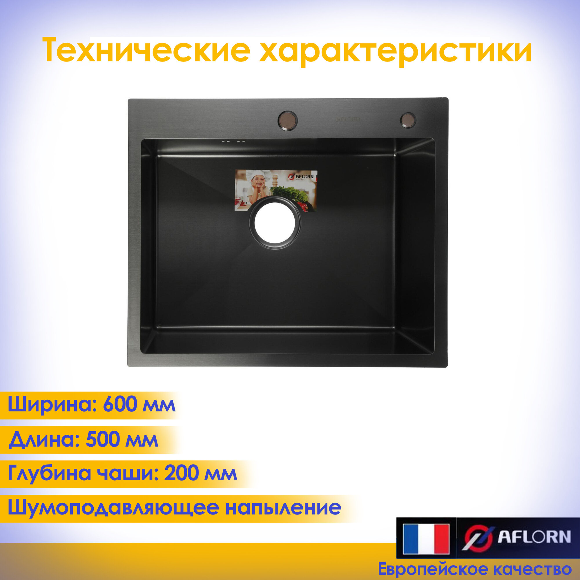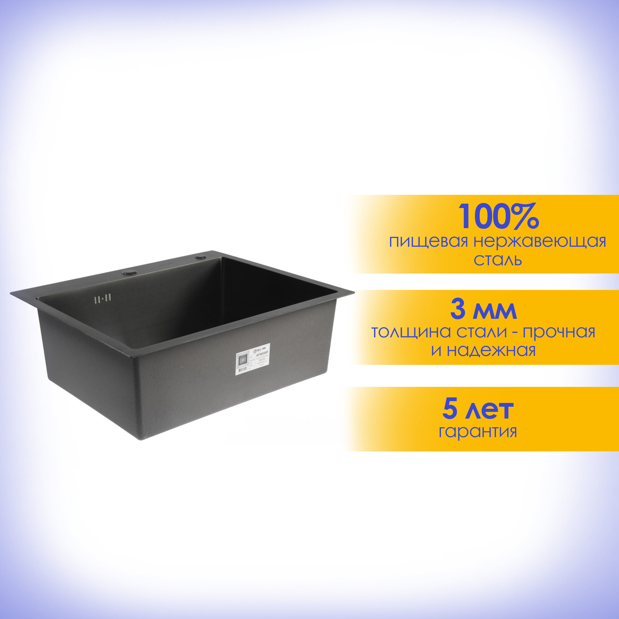 Мойка кухонная врезная из нержавеющей стали AFLORN толщина 3мм. 60х50см. Графит