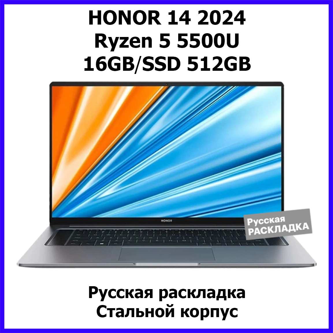 Ноутбук HONOR MagicBook 14" 1920x1080/5500/RAM 16Гб/SSD 512Гб/ENG|RUS/DOS Графитовый-серый 1.38 кг 5301AFWF