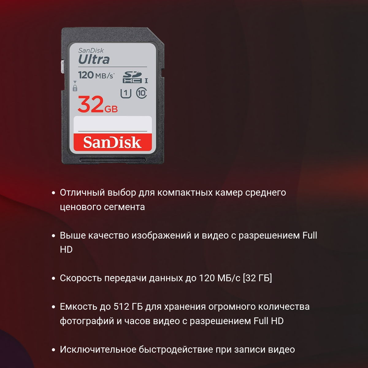 Карта памяти SANDISK 32Gb Ultra SDHC Class 10 UHS-I (120/10 MB/s)
