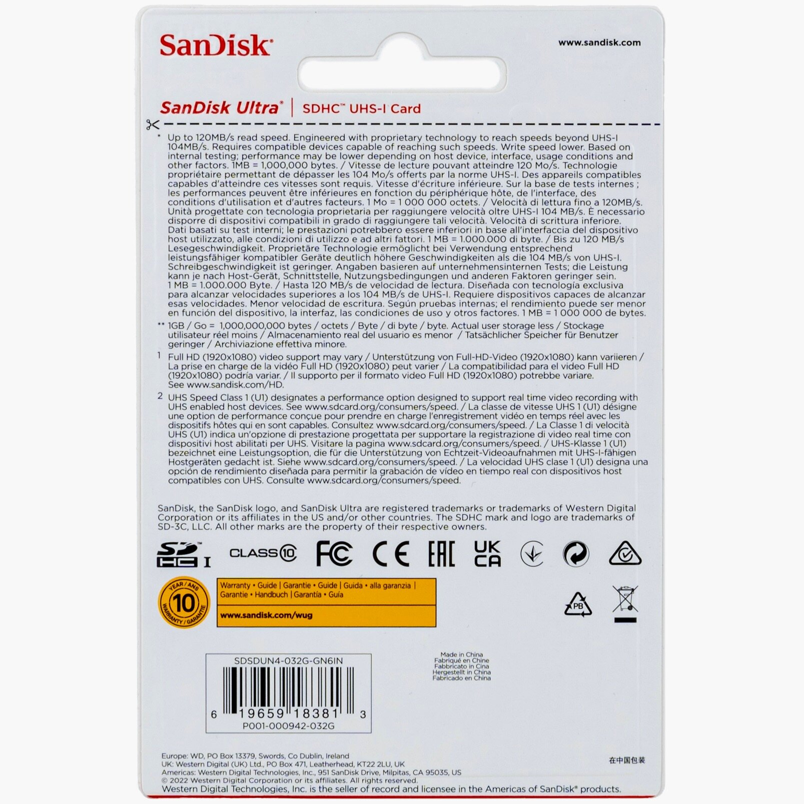 SanDisk SecureDigital 32Gb SDSDUN4-032G-GN6IN