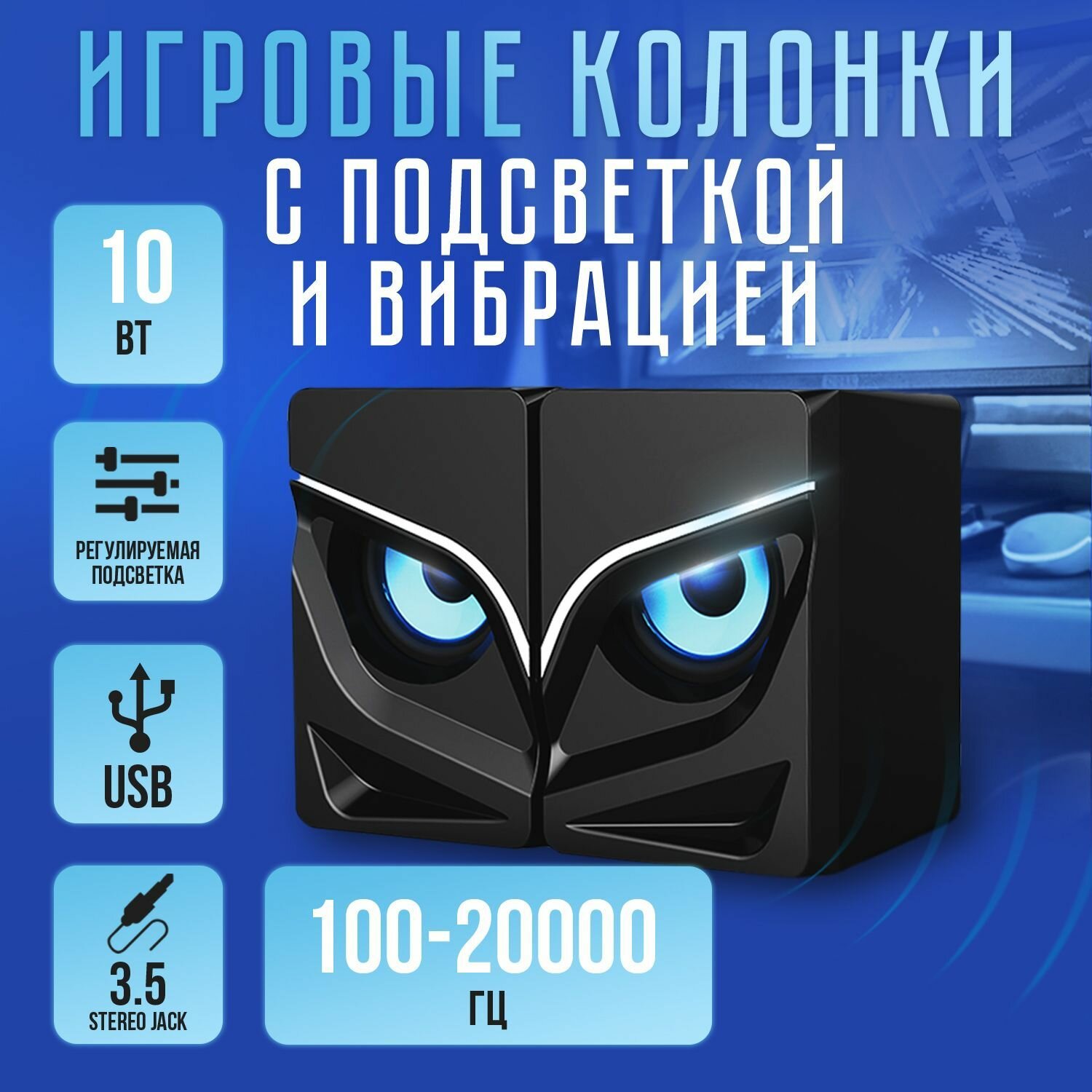 Акустическая система 2,0 Qumo Rage AS005,10ВТ, синяя подсветка USB+3.5 jack, объемное звучание