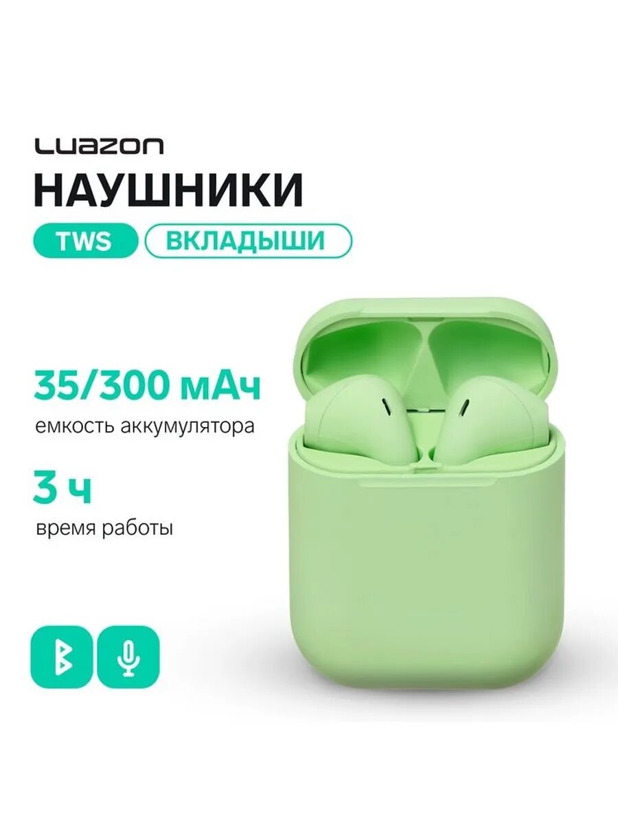 Наушники беспроводные Luazon i12, TWS, BT 5.0, 35/300 мАч, сенсор, матовые, зелёные