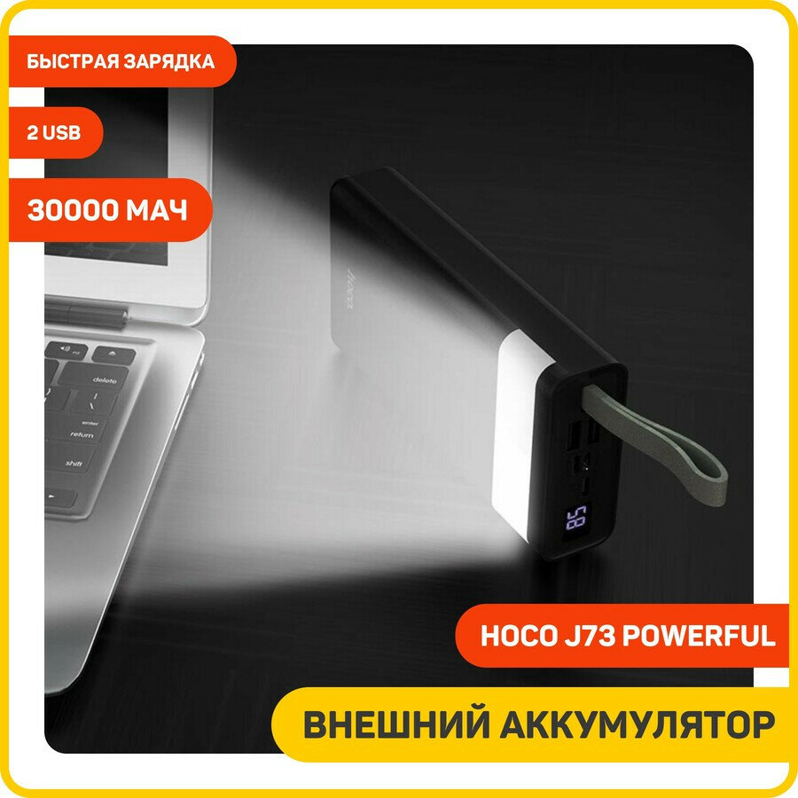 Power bank Внешний аккумулятор Hoco J73 30 000 mAh с фонариком черный