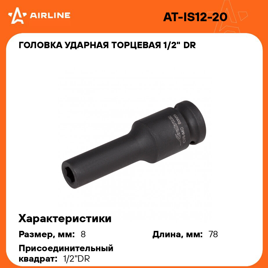 Купить Головка ударная торцевая 1/2" DR шестигранная 8мм L=78 мм AT-IS12-20 AIRLINE