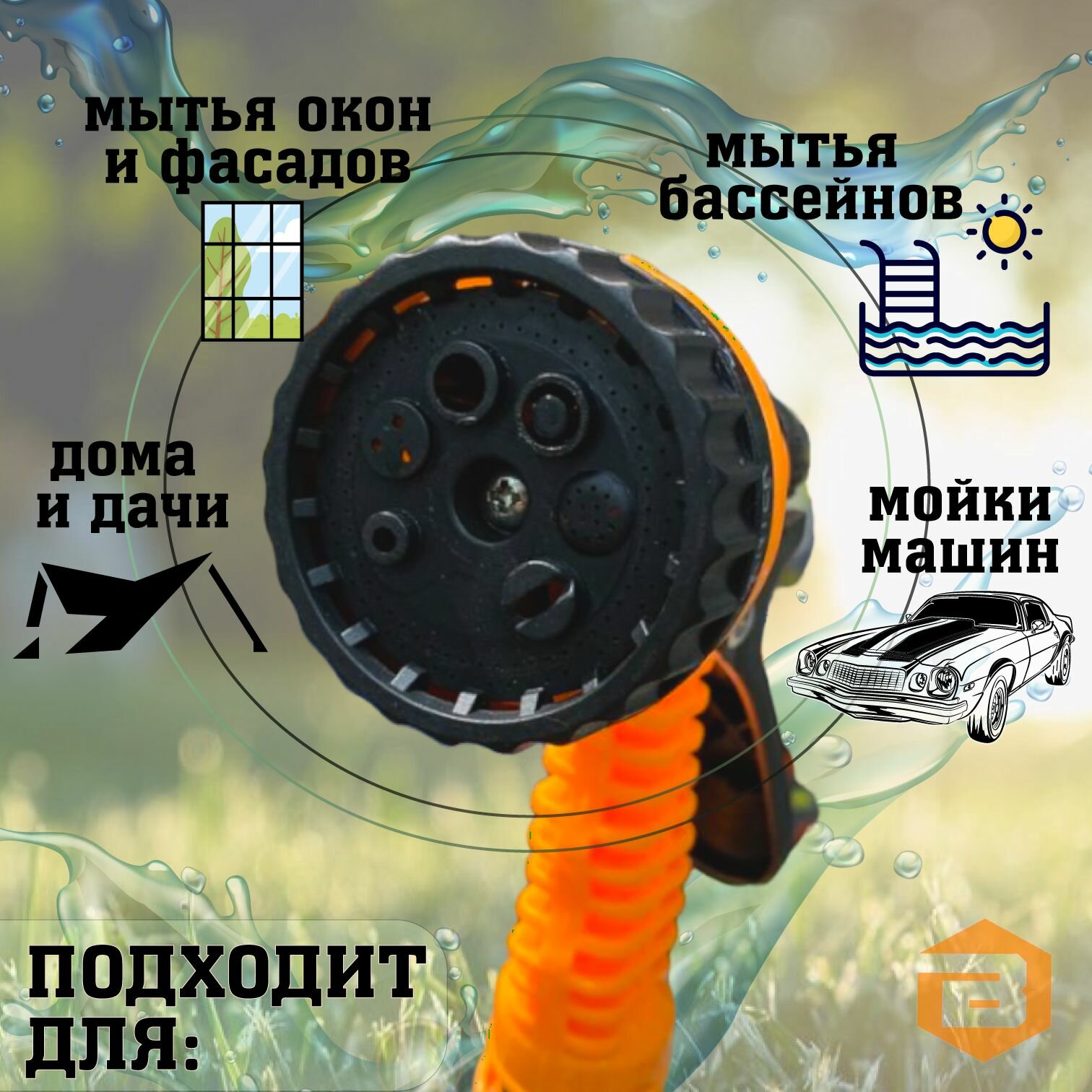 Набор для полива с растягивающимся шлангом 80м Вихрь для сада и дачи; 7 режимов полива
