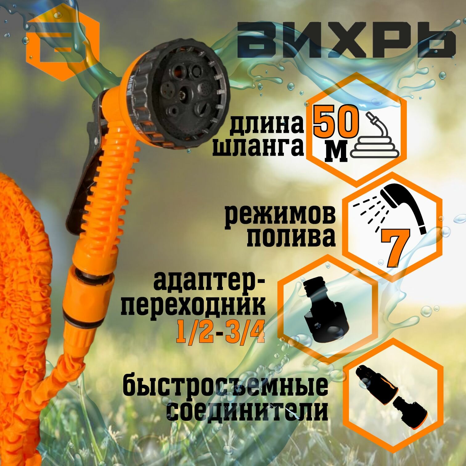 Набор для полива Вихрь с растягивающимся шлангом 50м, 73/7/2/31