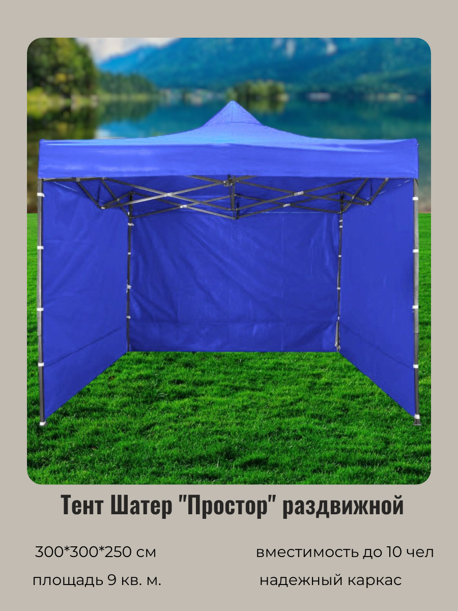 Тент-шатер "Простор" раздвижной 3*3*2,5м, 3 стенки, синий