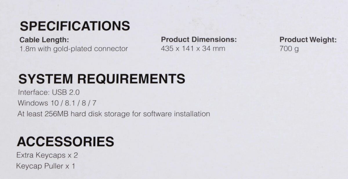 | Минусы: | Не понравился магазин PRIME 63, в котором я ее купил. Коробка вероятно вскрывалась, судя по люфту в 1см на наклейке и остатках воздуха под ней. И несколько клавиш имеют небольшие сколы. Но опять же, это вопрос к порядочности магазина, а не к клавиатуре. |