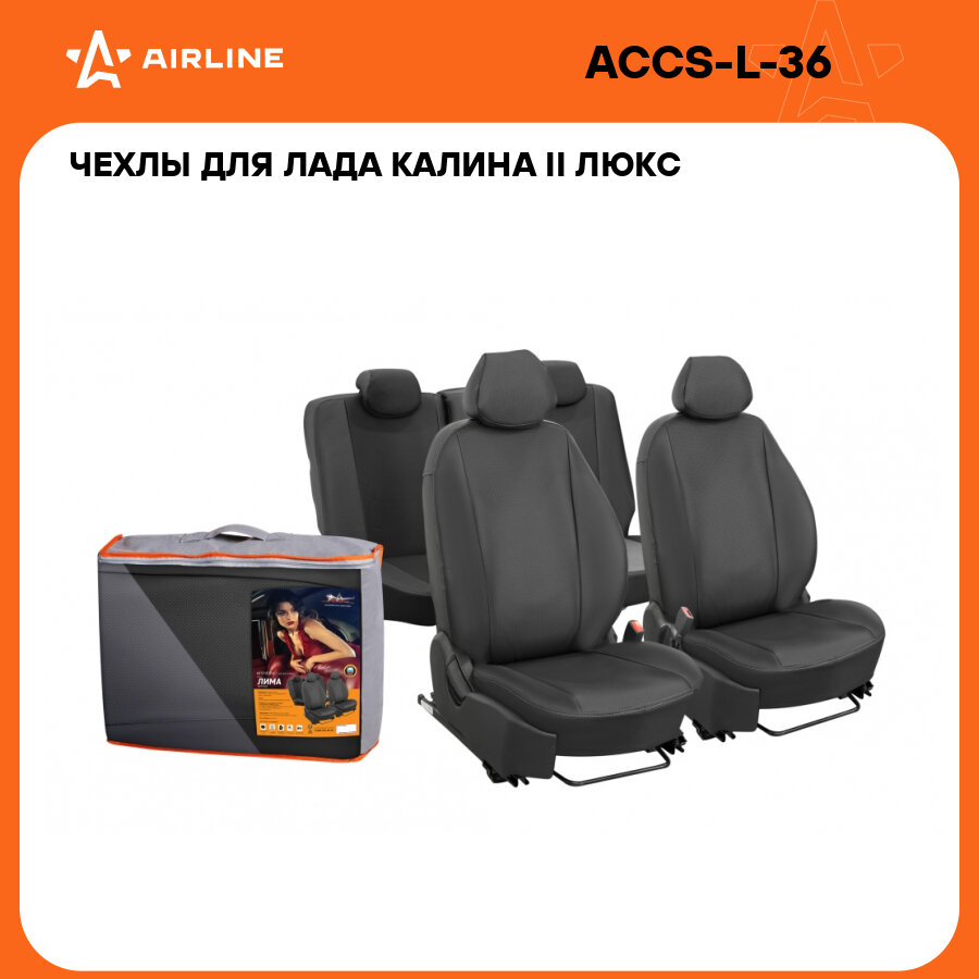 AIRLINE ACCSL36 Чехлы для Лада Калина II Люкс универсал (15-) Лима, 13 пред., задн.спин. 1/3, экокожа перф., черн. 1шт