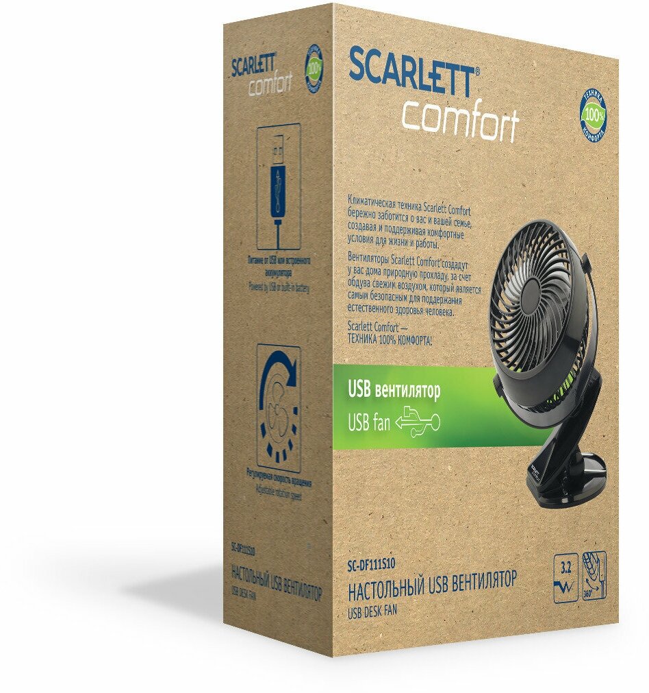 Вентилятор настольный Scarlett SC-DF111S10, черный, питание USB ( Артикул 320187 )