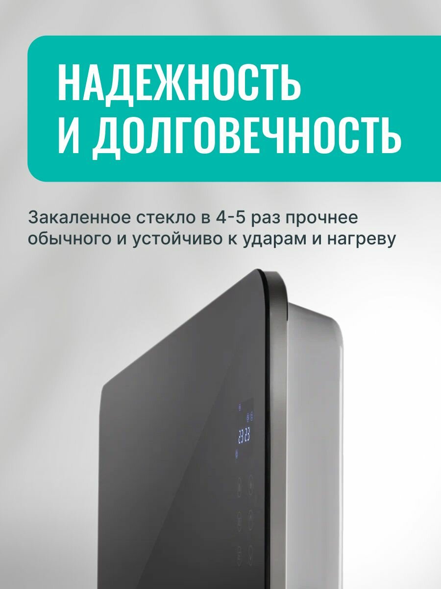 | Плюсы: | Панель из стекла, эстетично выглядит. Управление электронное, пульт |