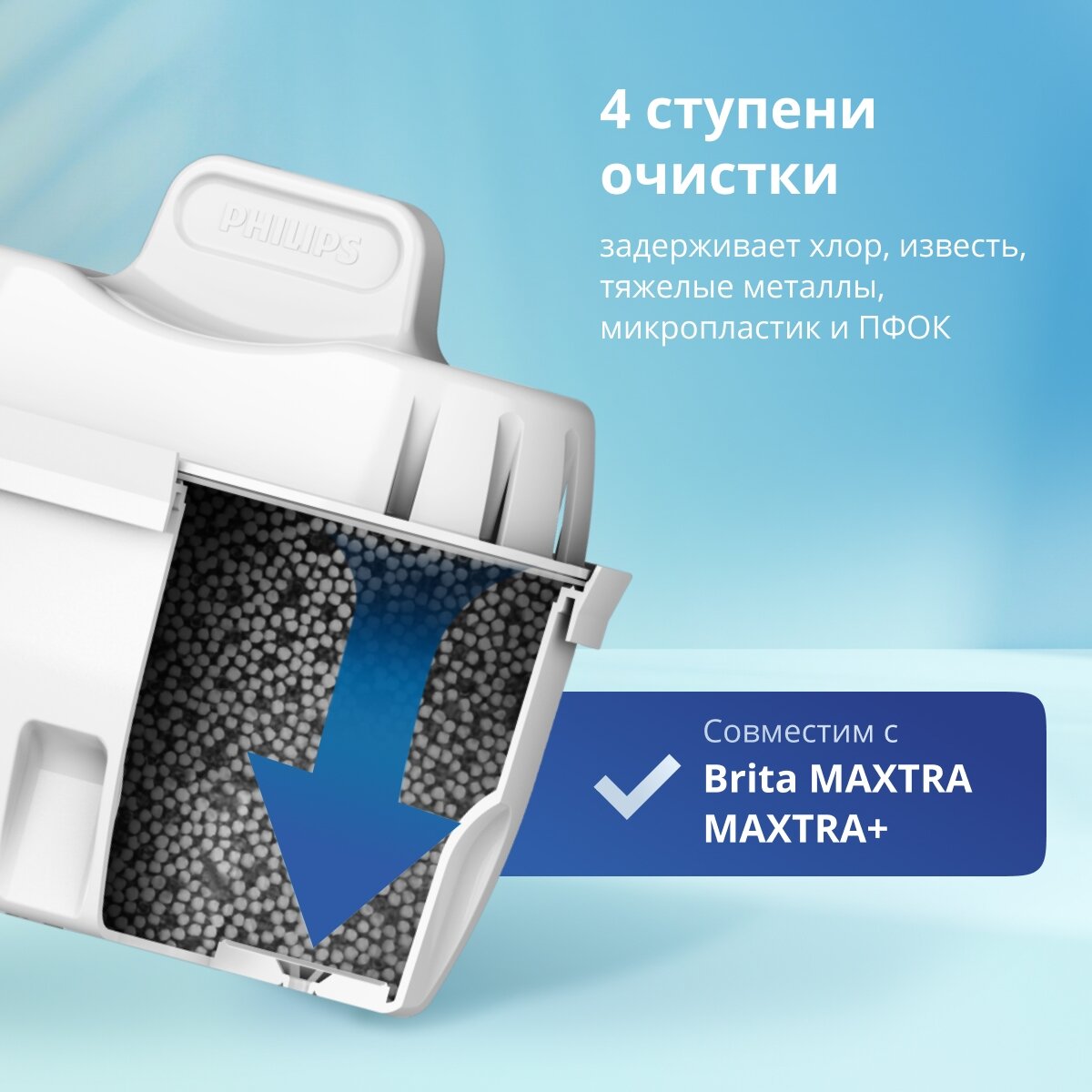 Картридж Philips Micro X-Clean AWP210/51 фильтр для очистки воды, совместим с кувшинами Brita MAXTRA и MAXTRA+, скорость фильтрации 0,3 л/мин, 1 шт