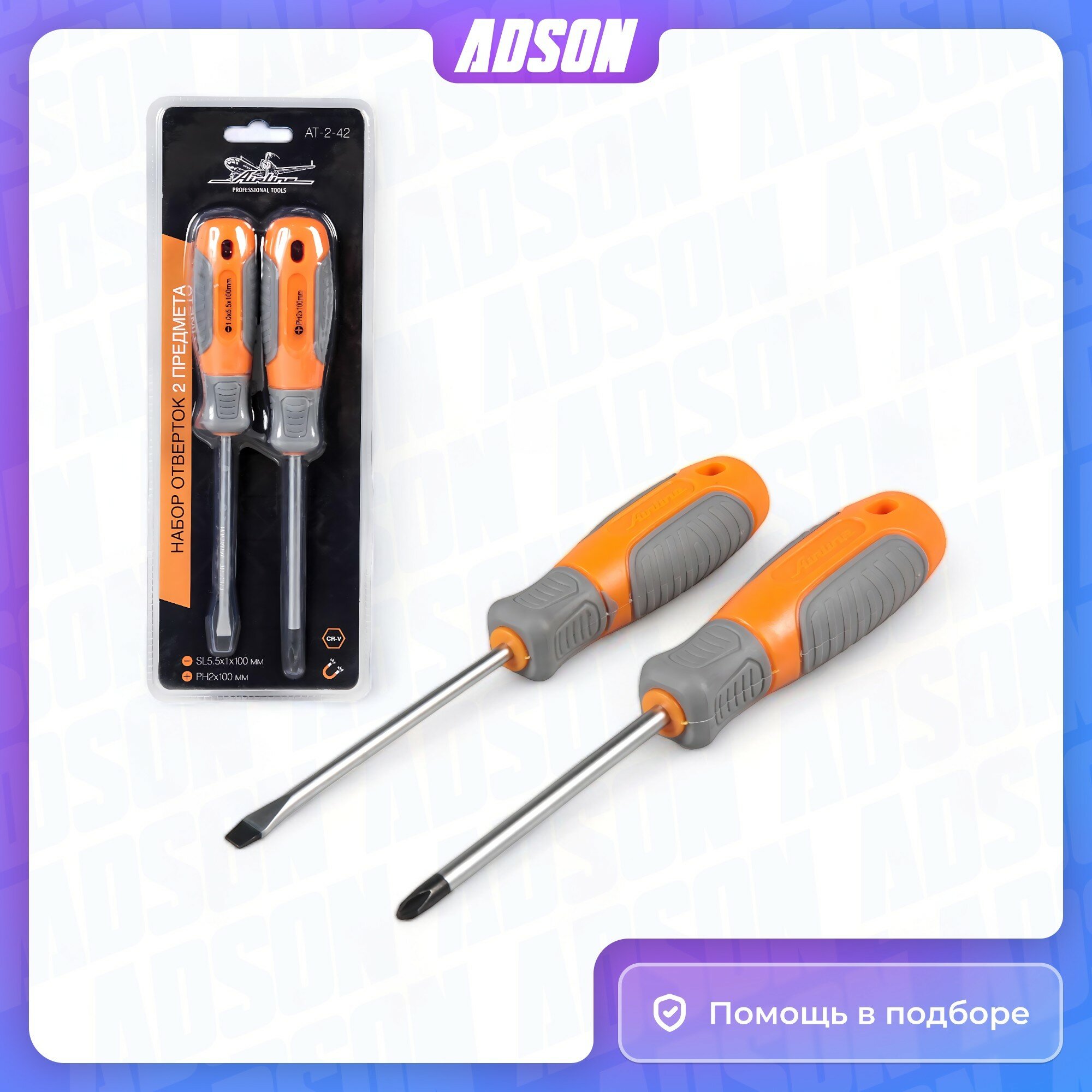 Купить Набор отверток 2 предмета (SL5х100мм,PH2х100мм), блистер AT-2-42 AIRLINE