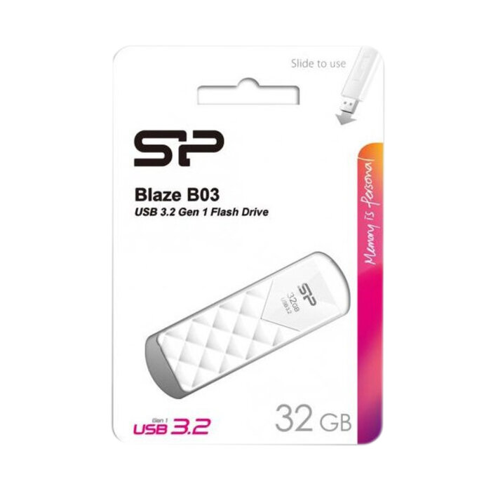 Флеш накопитель 32Gb Silicon Power Blaze B03, USB 3.2, Белый Sp032gbuf3b03v1w