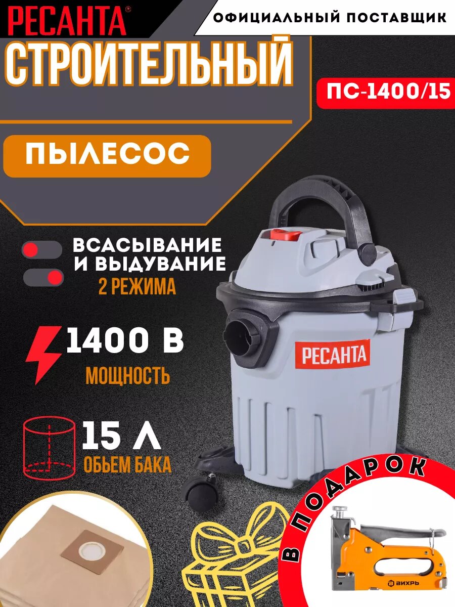 Ниже Вы можете прочитать отзывы на Пылесос Ресанта ПС-1400, сухой и влажный, 15 л, 1400Вт, ознакомится с подробными характеристиками, посмотреть интересные обзоры и фотографии на Пылесос Ресанта ПС-1400, сухой и влажный, 15 л, 1400Вт.