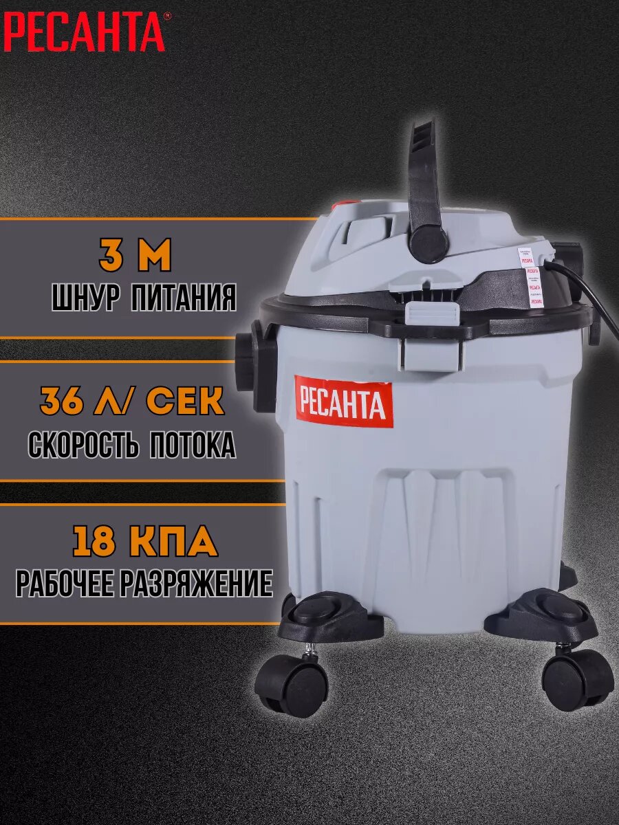 Пылесос строительный Ресанта ПС-1500/20, 1500 Вт